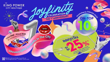 คิง เพาเวอร์ ซิตี บูทีก ที่สุดแห่งประสบการณ์ช้อปมิติใหม่ใจกลางเมือง จัดแคมเปญ JOYFINITY CELEBRATION “THE 1st ANNIVERSARY: ฉลองแบบได้ฟีล ช้อปดีลฟิน IN THE CITY” เฉลิมฉลองโอกาสครบรอบ 1 ปี ชวนสายช้อปและสายชิลมาสัมผัสโปรโมชันสุดฮอต มีไฟลต์หรือไม่มีไฟลต์บินก็ช้อปได้ รับส่วนลดแบบจัดเต็ม พร้อมกิจกรรมเซอร์ไพรส์ ตลอดเดือนตุลาคมนี้