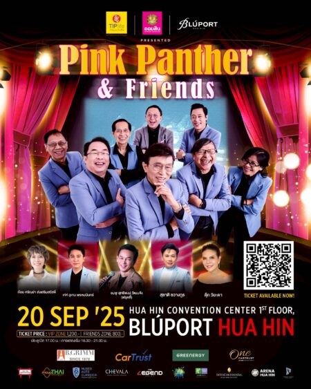 บลูพอร์ต หัวหิน และกลุ่มบริษัทพราว ร่วมกับ บริษัท ทิพยประกันชีวิต จำกัด (มหาชน) และธนาคารออมสิน ชวนย้อนคืนสู่ความทรงจำอันแสนอบอุ่นในคอนเสิร์ตสุดพิเศษ “Pink Panther & Friends” การกลับมาของวงดนตรีระดับตำนาน “พิงค์แพนเตอร์” ที่จะพาทุกคนร่วมเดินทางผ่านบทเพลงอันเป็นเอกลักษณ์ของวง พร้อมบอกเล่าเรื่องราวของมิตรภาพ ความคิดถึง และเส้นทางบนถนนสายดนตรีที่ยังคงเดินหน้าต่อไปอย่างสง่างาม โดยคอนเสิร์ตจะจัดขึ้นในวันที่เสาร์ที่ 20 กันยายน 2568 ณ หัวหิน คอนเวนชัน เซ็นเตอร์ ชั้น 1 บลูพอร์ต หัวหิน