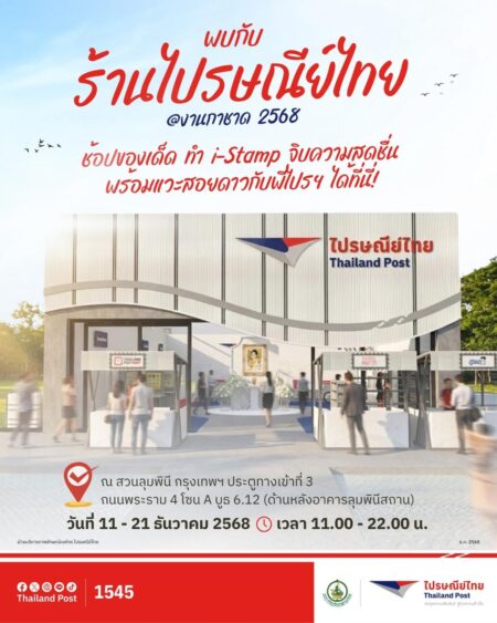 ไปรษณีย์ไทยจัดเต็มงานกาชาด ช้อปคุ้ม – สนุกครบ – ลุ้นรางวัลเพียบ ในงานกาชาด 11 – 21 ธ.ค. นี้ ณ สวนลุมพินี