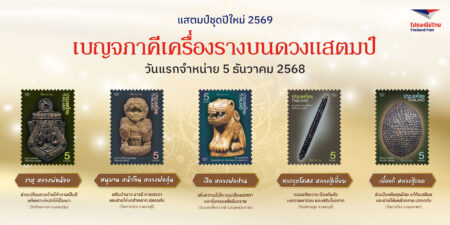 ไปรษณีย์ไทยเปิดจำหน่าย “แสตมป์เบญจภาคีเครื่องราง” ชวนส่งต่อความมงคลที่เข้าถึงได้ ผ่านศิลปะบนดวงแสตมป์ ดีเดย์ 5 ธันวาคม