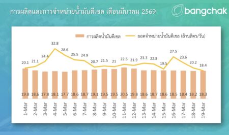 จากข้อมูลในเดือนมีนาคม 2569 พบว่ายอดจำหน่ายมีความผันผวนและเพิ่มสูงกว่าระดับการผลิตในหลายช่วง โดยเริ่มเห็นสัญญาณตั้งแต่ช่วงต้นเดือน และเพิ่มสูงขึ้นอีกครั้งในช่วงกลางเดือน สะท้อนว่าความต้องการใช้น้ำมันเพิ่มขึ้นอย่างรวดเร็วในระยะสั้น โดยมีสถานีบริการบางส่วนต้องปิดให้บริการชั่วคราวในบางช่วงเวลา คิดเป็นประมาณร้อยละ 10-20 ของสถานีบริการทั้งหมด ส่งผลให้การรับและหมุนเวียนน้ำมันในบางพื้นที่ไม่ทันต่อความต้องการ อนึ่ง หลังจากการกระจายน้ำมันสามารถดำเนินการได้ดีขึ้น สถานการณ์ได้เริ่มคลี่คลายตามลำดับ โดยจำนวนสถานีบริการที่ได้รับผลกระทบมีแนวโน้มลดลงต่อเนื่อง สถานีบริการส่วนใหญ่สามารถกลับมาให้บริการได้ภายใน 24-48 ชั่วโมง