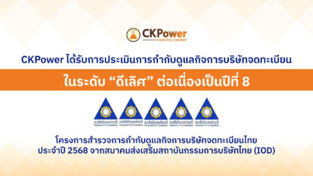CKPower ได้รับการประเมินการกำกับดูแลกิจการ CGR ประจำปี 2568 ในระดับ “ดีเลิศ” ต่อเนื่องเป็นปีที่ 8