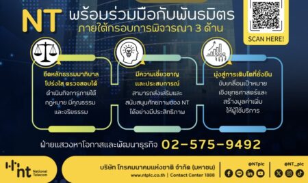 NT ประกาศความโปร่งใสในการคัดเลือกพันธมิตร เน้นมาตรฐานตามหลักธรรมาภิบาล โปร่งใส ตรวจสอบได้ พร้อมใช้เกณฑ์คัดเลือกที่มีความชัดเจนตามข้อกฎหมาย รวมถึงมีข้อบ่งชี้ที่ชัดเจนว่า ดำเนินกิจการภายใต้หลักการกำกับดูแลกิจการที่ดี มีคุณธรรมจริยธรรม เพื่อผลสู่การสร้างพันธมิตรที่ยั่งยืนในระยะยาว เปิดรับทุกข้อเสนอยึดหลักการร่วมพัฒนาบริการด้านดิจิทัลและการใช้ AI ในระยะยาว