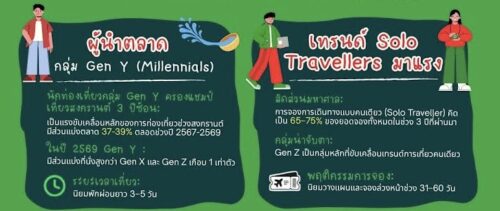 - International: ญี่ปุ่นครองแชมป์จุดหมายต่างประเทศที่คนไทยGen Y และ Gen X เลือกไปมากที่สุด ตามมาด้วย เวียดนาม และจีน ซึ่งมีการเติบโตอย่างมีนัยสำคัญในปี 2568 และ 2569