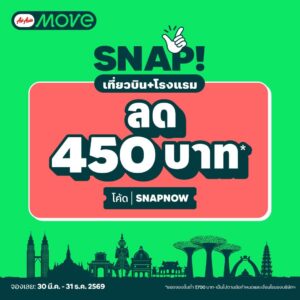 AirAsia MOVE จัดเต็มดีลสุดคุ้มต้อนรับฤดูกาลท่องเที่ยว (High Season) ให้คุณออกไปสำรวจโลกได้ในราคาประหยัดกว่าเดิม ด้วยส่วนลดพิเศษสำหรับจองโรงแรมทั่วโลก ลดเพิ่มทันที 400 บาท เพียงใส่โค้ด MOVEHOTELS50 (เมื่อมียอดจองขั้นต่ำ 3,000 บาท) และสำหรับสายเที่ยวแบบแพ็กเกจสุดคุ้มกับ SNAP! (เที่ยวบิน+โรงแรม) ทุกจุดหมายปลายทาง รับส่วนลดเพิ่ม 450 บาท เมื่อใส่โค้ด SNAPNOW (เมื่อมียอดจองขั้นต่ำ 7,700 บาท) จองเลยวันนี้ที่แอป AirAsia MOVE เพื่อสัมผัสประสบการณ์ “บิน พัก เที่ยว แอปเดียวครบ” ในราคาสบายกระเป๋า